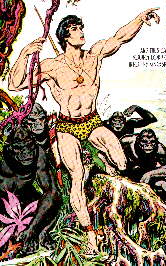 Hal Foster, the acclaimed artist of the Tarzan Sunday page who had been illustrating the strip almost since it's inception (see bio on Foster) was leaving the strip to pursue the dream of his own strip, free of the restrictions of the Tarzan character. Thus, as Foster was going over to King Features to do Prince Valiant, United Features needed a cartoonist to take over Tarzan, and this is where Hogarth just happened to be at the syndicate and was asked if he would like to try out for the job along with the other artists who were trying to get the enormously popular strip. Hogarth had been a fan of Foster's art and his sample page bore a strong resemblance. The syndicate was impressed, and Hogarth got the job. The sample page itself was published as Hogarth's first Sunday page on May 9, 1937. This made him the only cartoonist to follow both Raymond and Foster, arguably the two greatest adventure cartoonist-illustrators, on strip assignments. An interesting note: Foster's first Prince Valiant page came out on February 13 and his last Tarzan came out on May 2. Well, some papers carried both strips, overlapping Foster's work for twelve weeks. Unfortunately from the beginning, Hogarth's attempts to give the strip his own character were resisted by the syndicate editors, who didn't want to fool with a successful formula. One of these restrictions was that Hogarth had to maintain a Foster-ish style, so it wasn't until Hogarth was able to exhibit his ability to maintain Tarzan's popularity that he was allowed to develop his own look to the tarzan strip, which began to occur in late 1938. |
