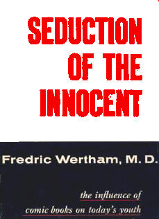 It would be unfair to indicate that Wertham was alone in his quest. In 1940 children's book author Sterling North attacked comics as vile sex serials and in 1949 Geoffrey Wagner wrote "Parade of Pleasure" a highly sought after book by comic collectors. In this book Wagner accused comic artists, writers and publishers as degenerates and believe it or not he stated that the two most popular comic publishers of the day were "..staffed entirely by homosexuals and operating out of our most phalliform skyscraper." Pretty strong stuff I say! One of the results of these events was the convening of a Senate panel in New York State focusing on comic books and other media. But by this time the death knell was beginning to ring for comics. All over America comic books were feeling the pressure from religious and community groups. Major cities in some states banned comic books. Laws were introduced in 18 states restricting the sale of comics. Protesters were visible in front of stores and newsstands that sold comics. magazine distributors were deluged with complaints. Then Wertham wrote yet another book, and this would ring the final bell for many comics companies, and almost comics themselves. Released in 1954, "Seduction of the Innocent" was Wertham's epic tome on the effects of comics on children. He gave graphic examples of sex and violence. He told of scores of stories with unredeemed criminals. Dope, sadism, rape. |