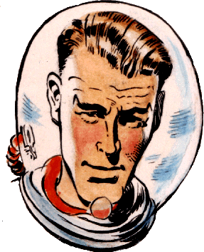 Like most European comics, Eagle was a weekly publication with several stories per issue, but only a couple of pages devoted to each strip. Other regular strips were PC49 (John Worsley), Harris Tweed (John Ryan), Grandpa (Peter Probyn) and Professor Meek (Ionicus.) Hampson was the driving force in Eagle's art department and set up a studio system for the magazine, gathering a team of six artists to work on the Dan Dare strip, with himself as principal artist, and scriptwriter until the mid-'50's. Hampson also created a series based on the life of Christ, "The Path of Courage", and "The Commanders", a story celebrating the wartime activities of Winston Churchill and Bernard Law Montgomery. Although Hampson had created Dan Dare and was responsible for most of the artwork through the first 10 years, the copyright was held by the publishers, and when they were bought out Hampson had difficulty working with the new owners. He finally left the strip in 1960, and was succeeded by artist Frank Bellamy. Despite several efforts he was never again to work in comics and worked as an illustrator until his death by a stroke in July 1985. He was most influenced by American science fiction artist Chesley Bonestell. written by Andy Etris 2000 |