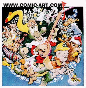 At Dell, he illustrated Walt Disney Comics & Stories covers & interiors, New Fun Comics and Animal Comics. It was in the last title he introduced what later became his footnote character, Pogo the Possum along with the other cast members of the Okefenokee swamp. It was also during this time that Walt's association with the fairy tale genre blossomed as Walt created, wrote and illustrated a number of titles for Dell called Fairy Tale Parade, Santa Claus Funnies, Raggedy Ann & Andy, Mother Goose and others.. |