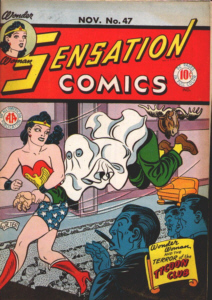In 1940 Marston had become an educational consultant for Detective Comics (now DC Comics), the publisher of the "Batman", and "Superman" comics series. Max Gaines, then head of Detective Comics, encouraged Marston to create a female comic book hero, which Marston did under the pseudonym 'Charles Moulton'. In December 1941, "Wonder Woman" made her debut in "All Star Comics" #8. The character's next appearance was in "Sensation Comics" #1 (January 1942), and six months later the characters eponymous comic book began publication. Wonder Woman has been in print ever since. The stories were initially written by Marston and illustrated by artist Harry Peter. During his life Marston had written many of articles and books on psychological topics, but his last 6 years of writing were devoted to his comics creation. William Moulton Marston died of cancer May 2, 1947 in Rye, New York. written by Andy Etris |